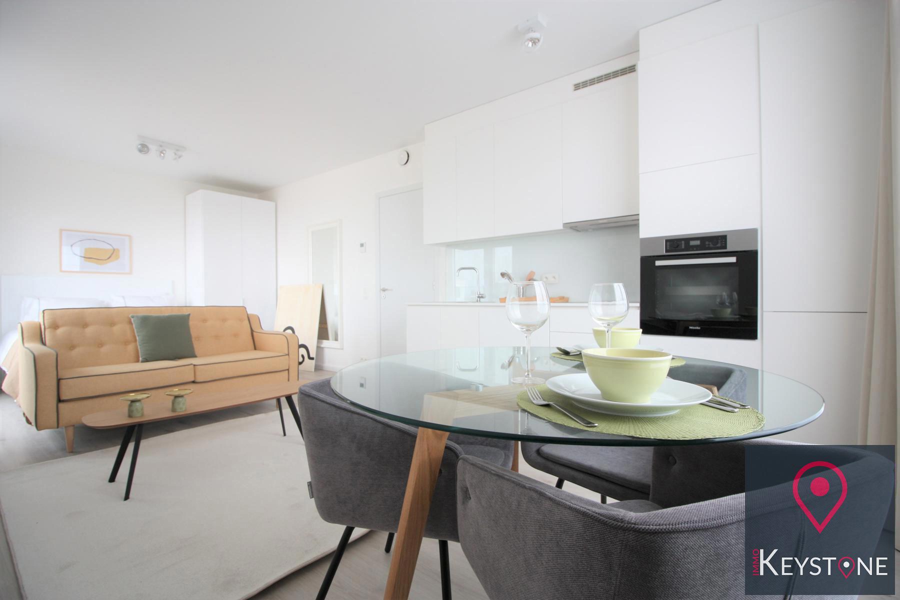 Découvrez ce beau studio meublé de +/- 45 m², à côté de la Commission européenne sise rue de Genève, proche de l'OTAN et de Brussels Airport, dans un immeuble récent. Il est composé comme suit : lumineux séjour avec accès à la terrasse, cuisine ouverte hyper équipée, coin à dormir, salle de bains, toilette séparée, buanderie équipée. Provision charges communes de 150€/mois : eau, chauffage, communs. Bail 1 an minimum. PEB C.