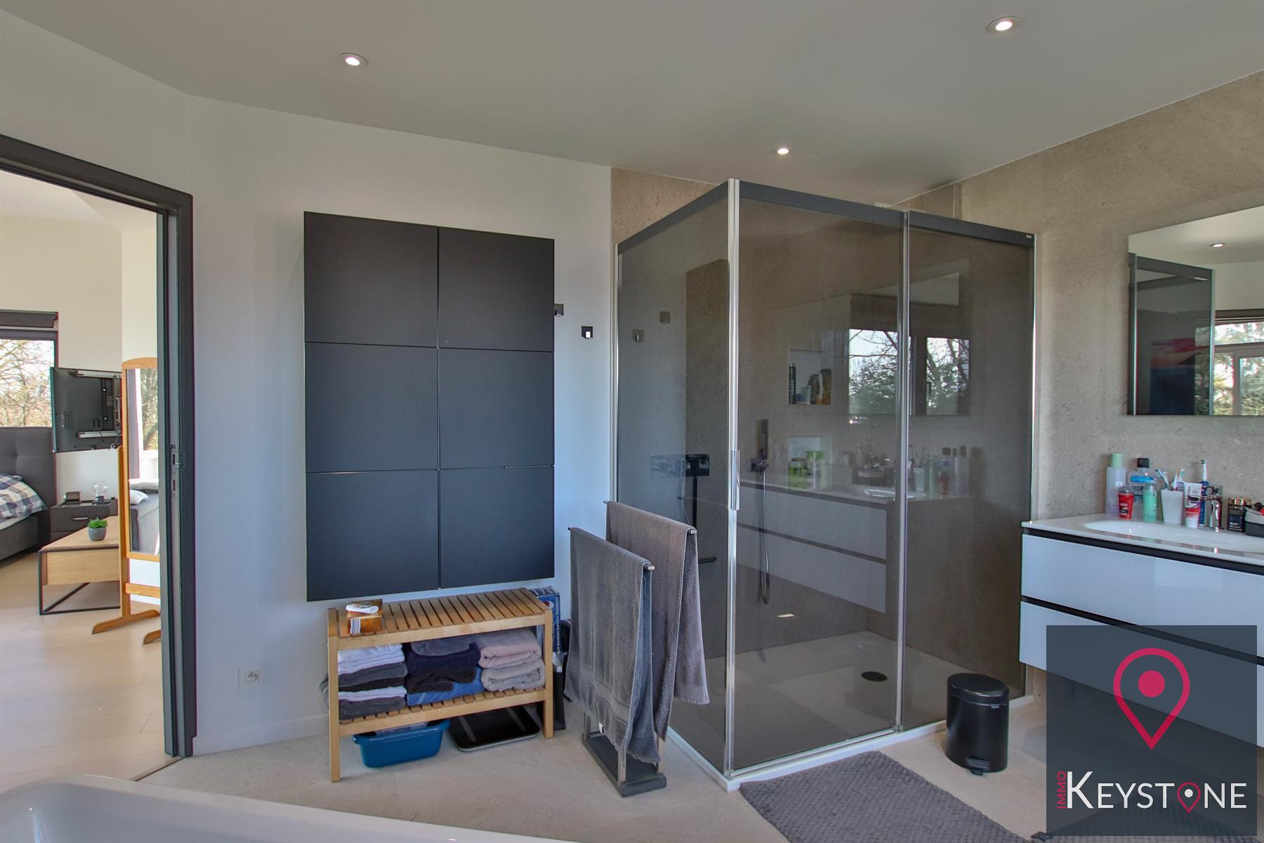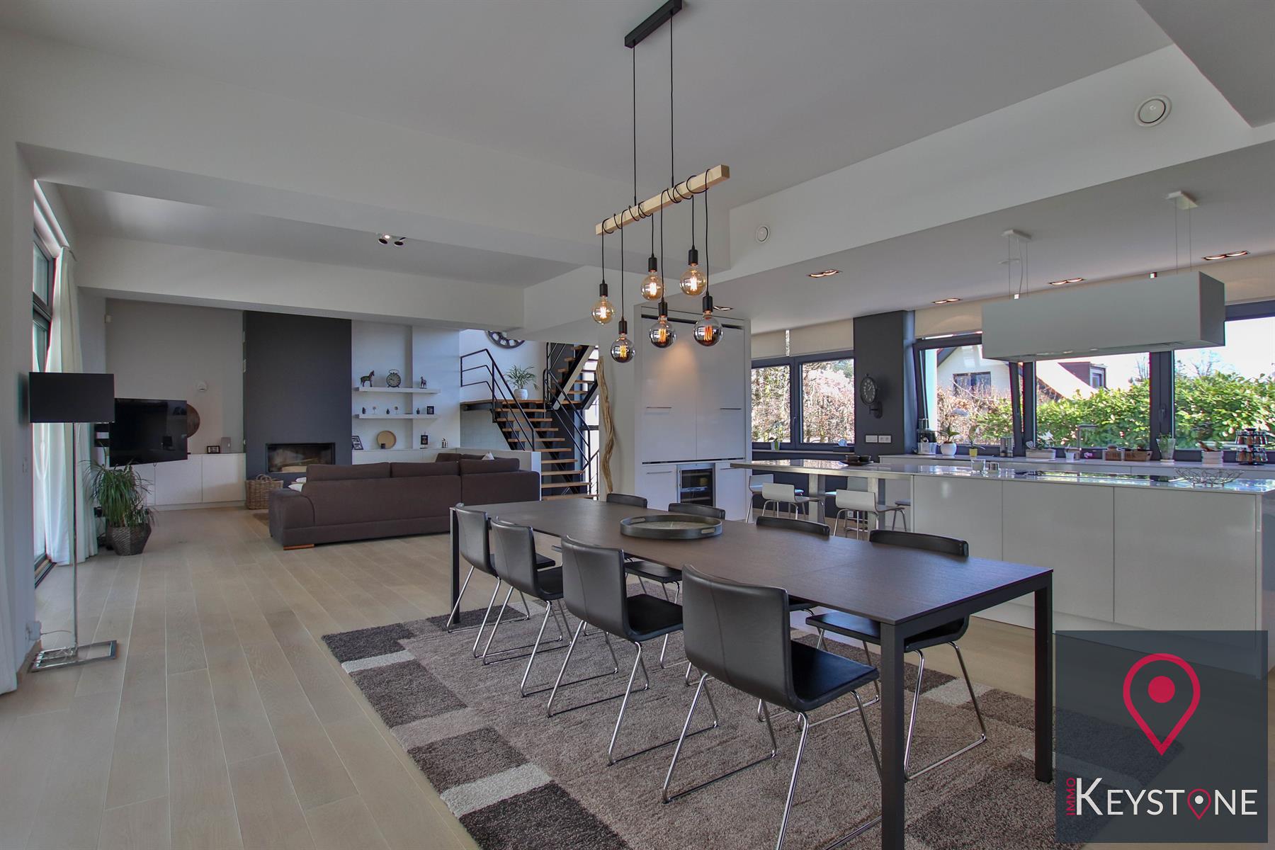 La pièce est répartie comme suit: Un grand salon avec feu ouvert, une salle à manger, une cuisine ouverte super-équipée, un coin bureau , des wc , une buanderie ...